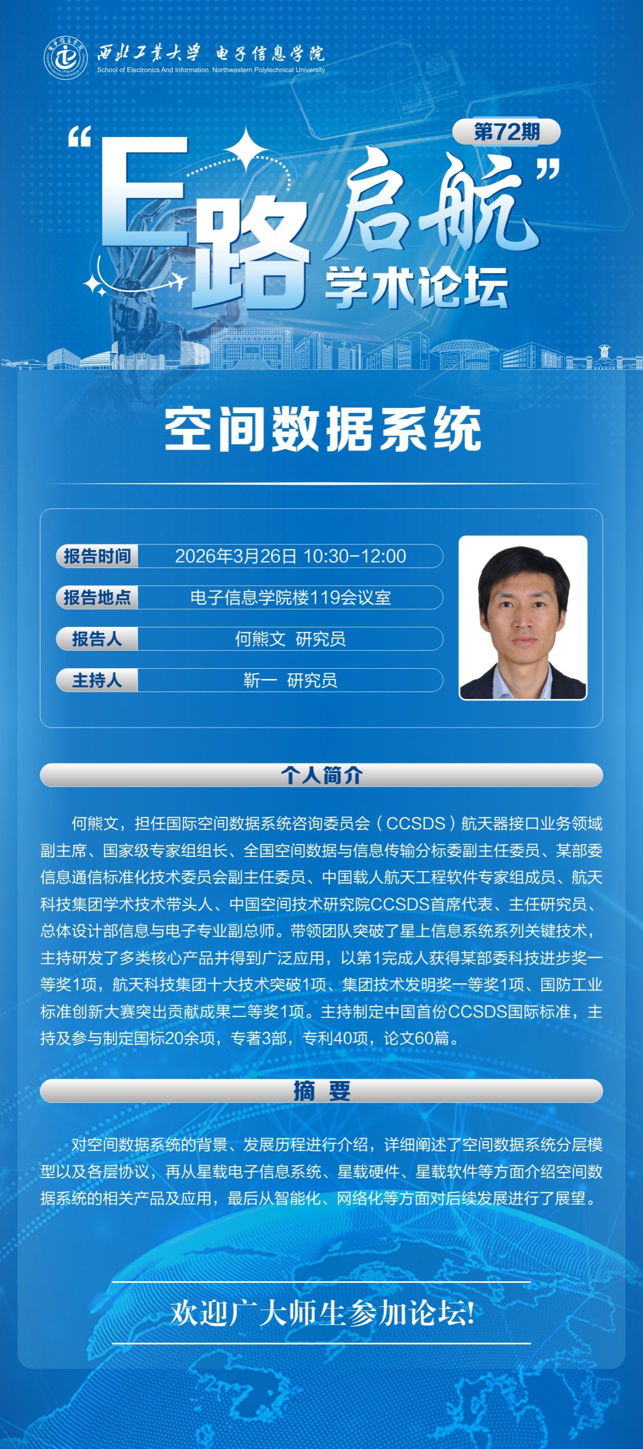电子信息学院举行“E路启航”学术论坛第七十二期-空间数据系统