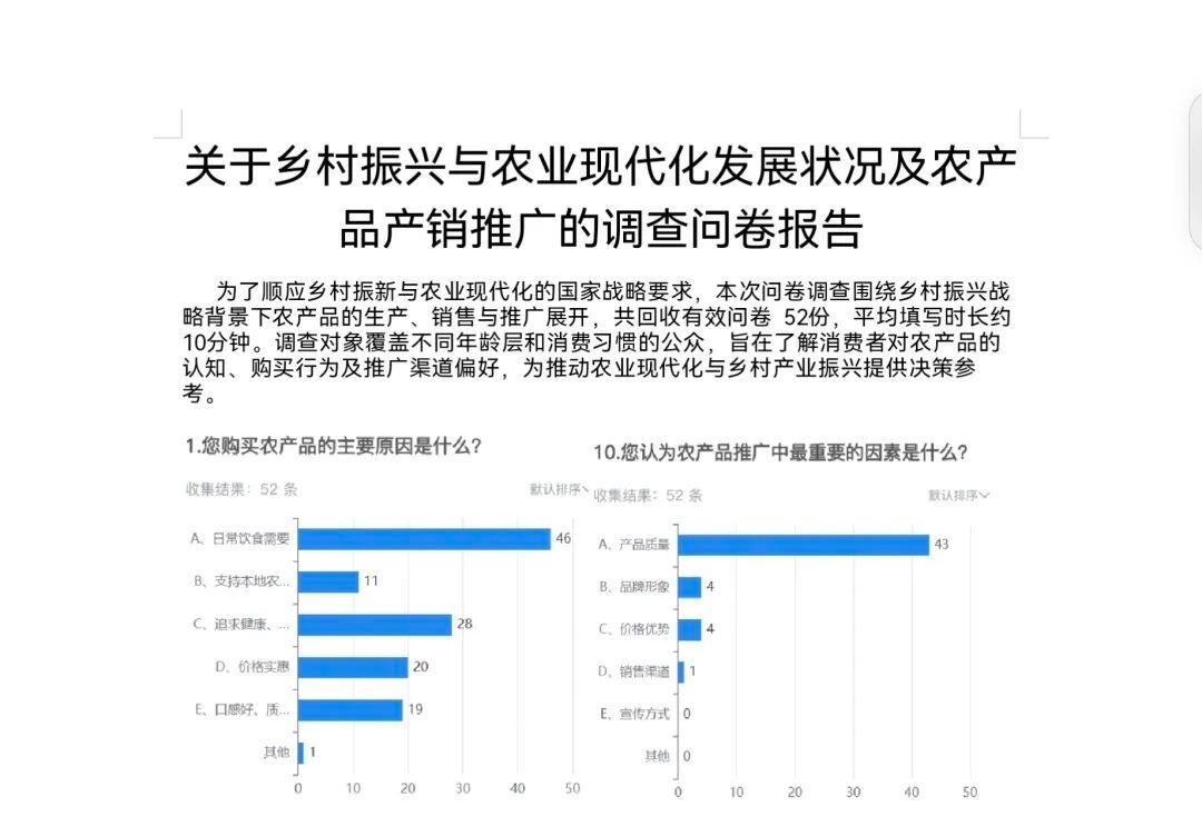 实践队系统梳理三地产业扶持政策与行业资料,整合农产品线上推广、电商销售、物流流通等运营数据,构建起完整的调研数据体系。团队通过问卷、评论收集消费者反馈,分析各产区线上运营模式,为全面把握地标农产品发展现状、提出优化方向提供了有力的支撑。