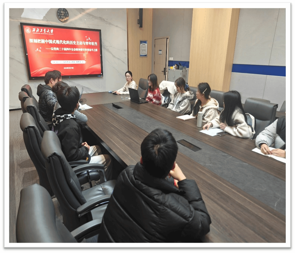 3 月 19 日,西北工业大学电子信息学院团委、学生会组织开展党的二十届四中全会精神专题宣讲会,本次系列学习活动由马克思主义学院杨思羽担任宣讲人,学院团委、学生会全体骨干全程参与学习。