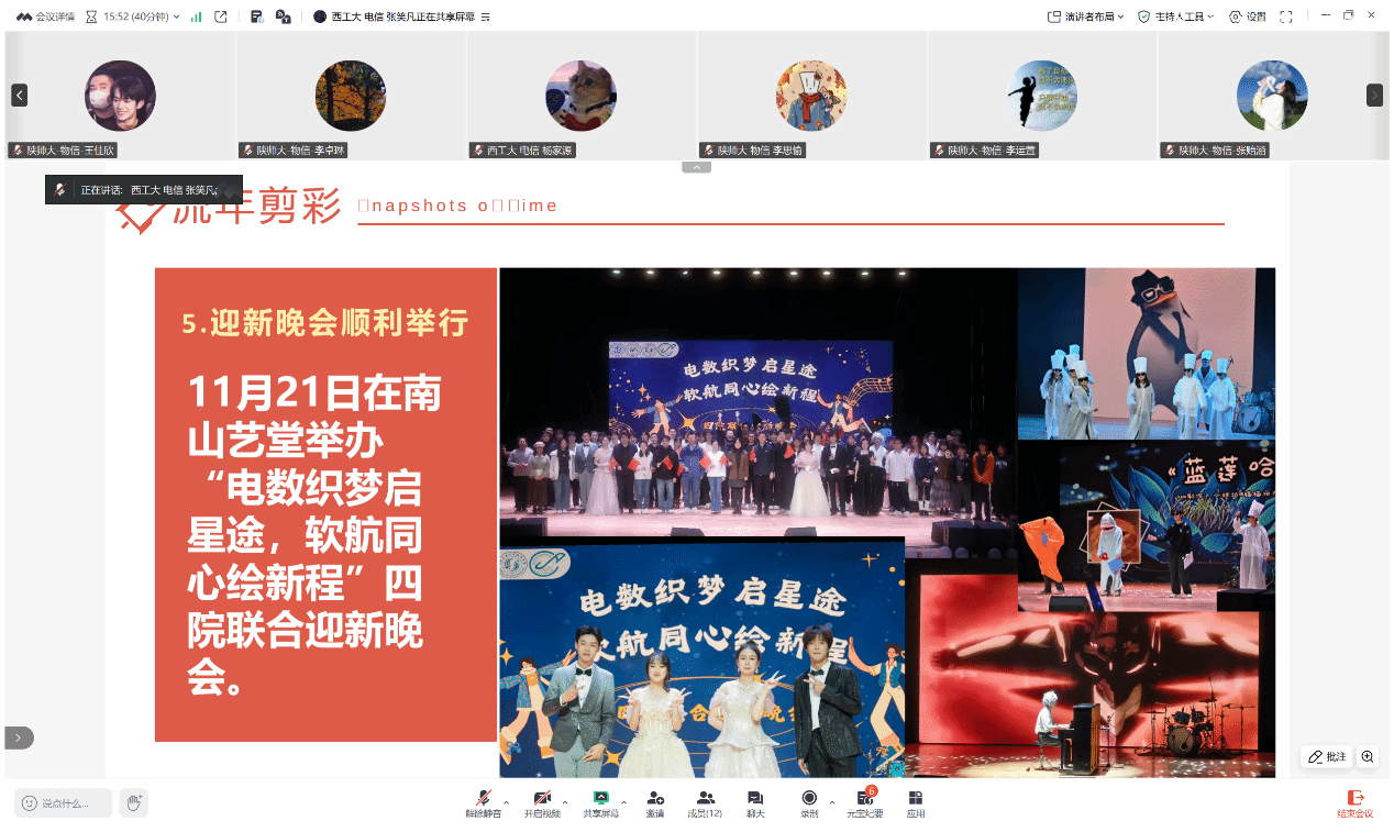 讨论尾声,两院学生会主席分别作会议总结。双方一致表示,此次交流分享搭建了宝贵的学习平台,实现了学生工作经验的互通互鉴,西工大电子信息学院学生会的务实高效与陕师大物理学与信息技术学院学生会的多元创新,均为今后工作提供了重要参考。未来,双方将以此次交流为契机,持续深化校际联动,相互学习、携手共进,不断优化组织管理、创新工作方法,切实提升服务同学的能力水平。