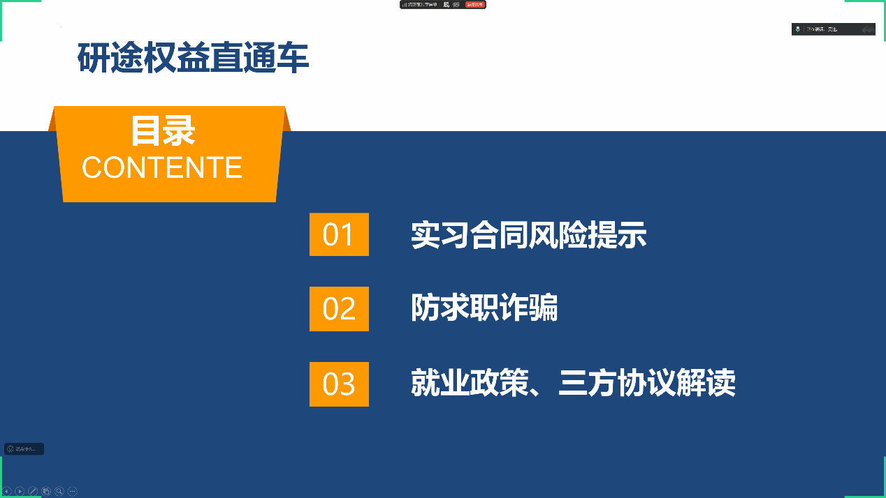 本次分享会聚焦实习与就业中的高频权益问题,设置三大核心模块,用清晰的案例、细致的讲解为大家答疑解惑,助力同学们安全、顺利开启职场之路。