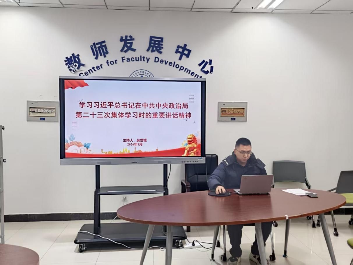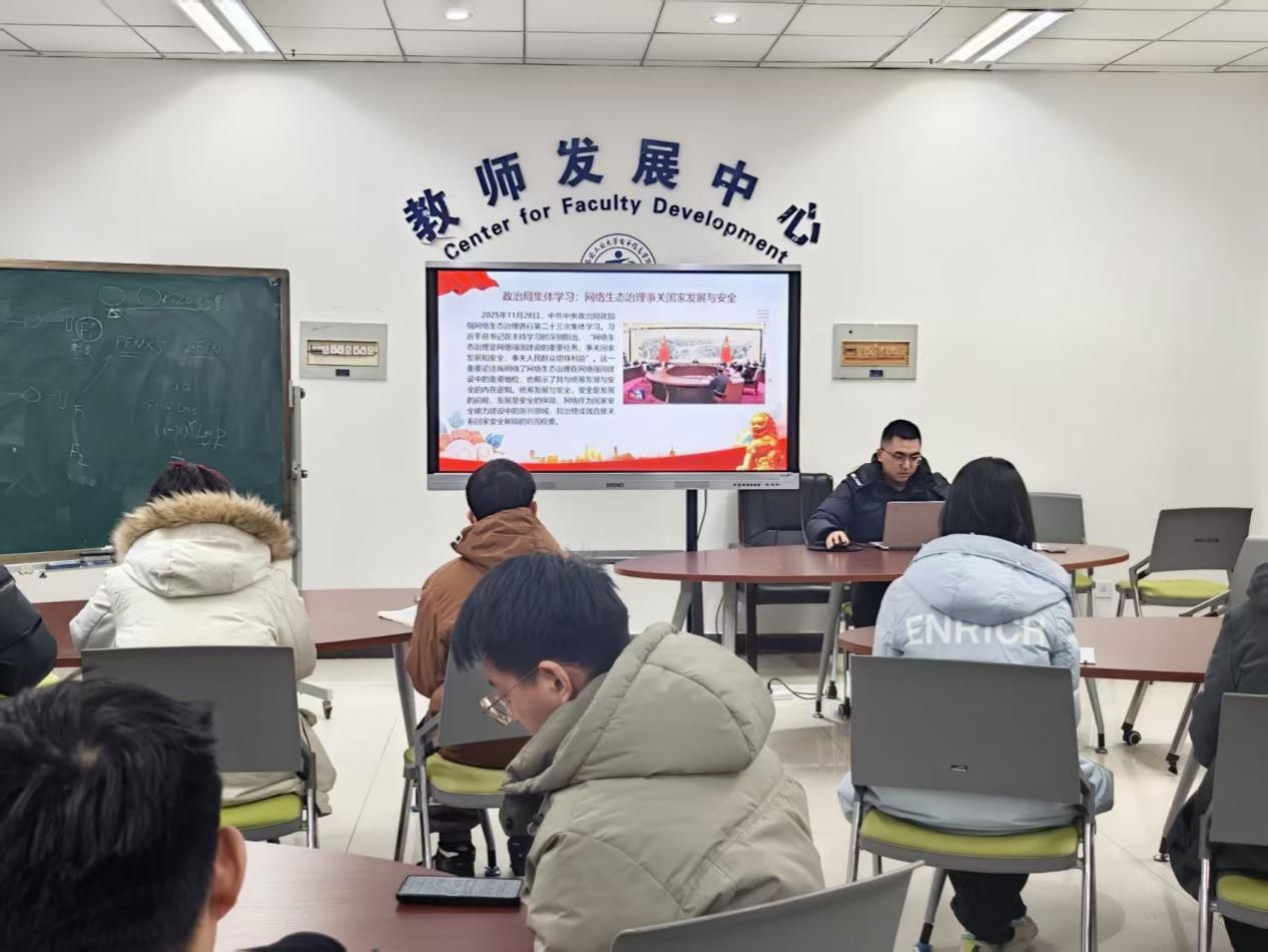深入学习贯彻党的二十届四中全会精神,增强青年党员在网络空间的使命担当,1月9日,电子信息学院硕士生第二党支部组织开展专题党课,集中学习习近平总书记在中共中央政治局第二十三次集体学习时的重要讲话精神。党支部书记吴世城主持学习,支部全体党员参加。