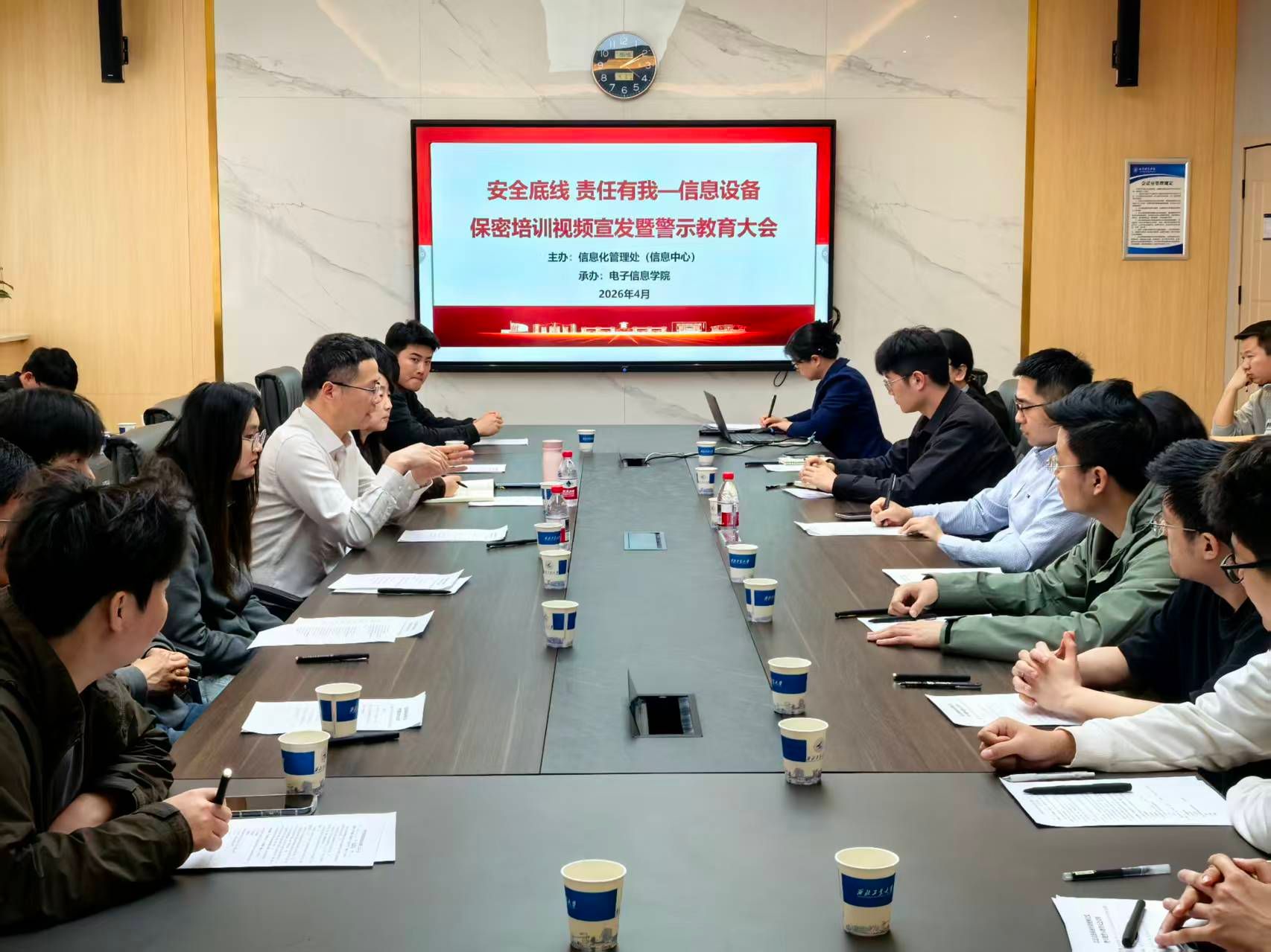 4月3日,电子信息学院博士生第二党支部、硕士生第八党支部联合承办“安全底线 责任有我”信息设备保密专题培训。活动由电子信息学院副院长陶明亮主持,学校信息化管理处副处长张文生、保密管理与运维办公室科长王聪,学院保密员魏海燕出席,两个支部共60余名党员参加培训。